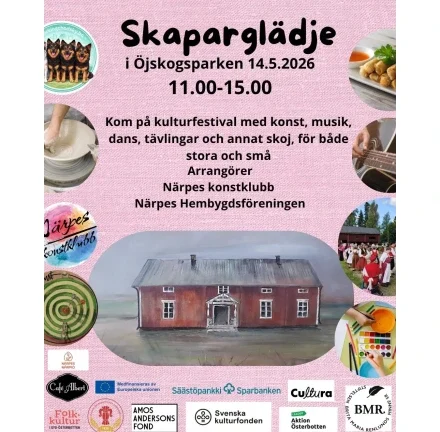 Hem / Evenemangkalender / Skaparglädje i Öjskogsparken Skaparglädje i Öjskogsparken 14.05.2026 11:00 – 14.05.2026 15:00 En dag späckad med skapande verksamhet, konst, musik, tipspromenad, mat,dans och mycket, mycket mera. Läs mera på Österbottens evenemang webbsida