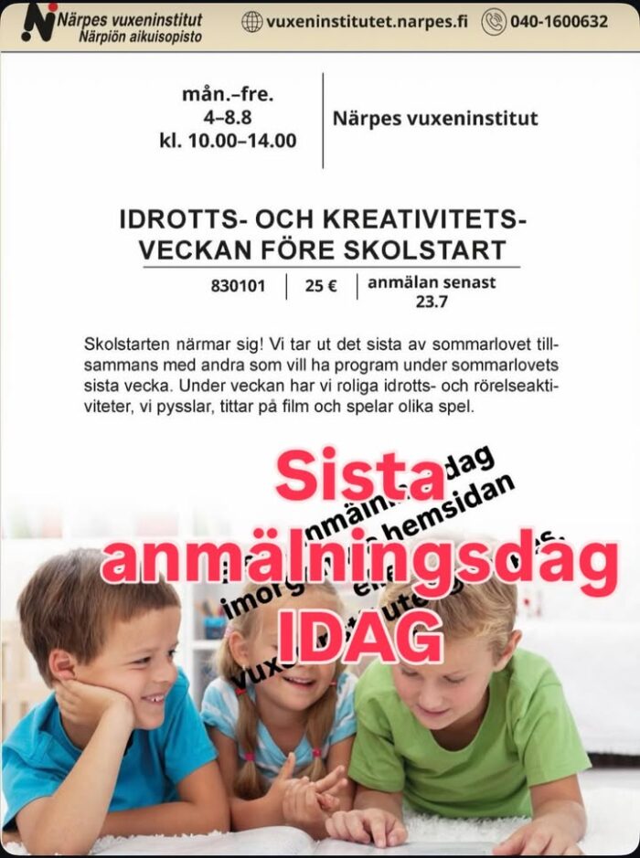 Kulttuuri, vapaa-aika ja nuoriso 1.12.2025 Ajankohtaista Voitte jo nyt ilmoittaa toimintanne vuoden 2026 urheilulomaohjelmaan.