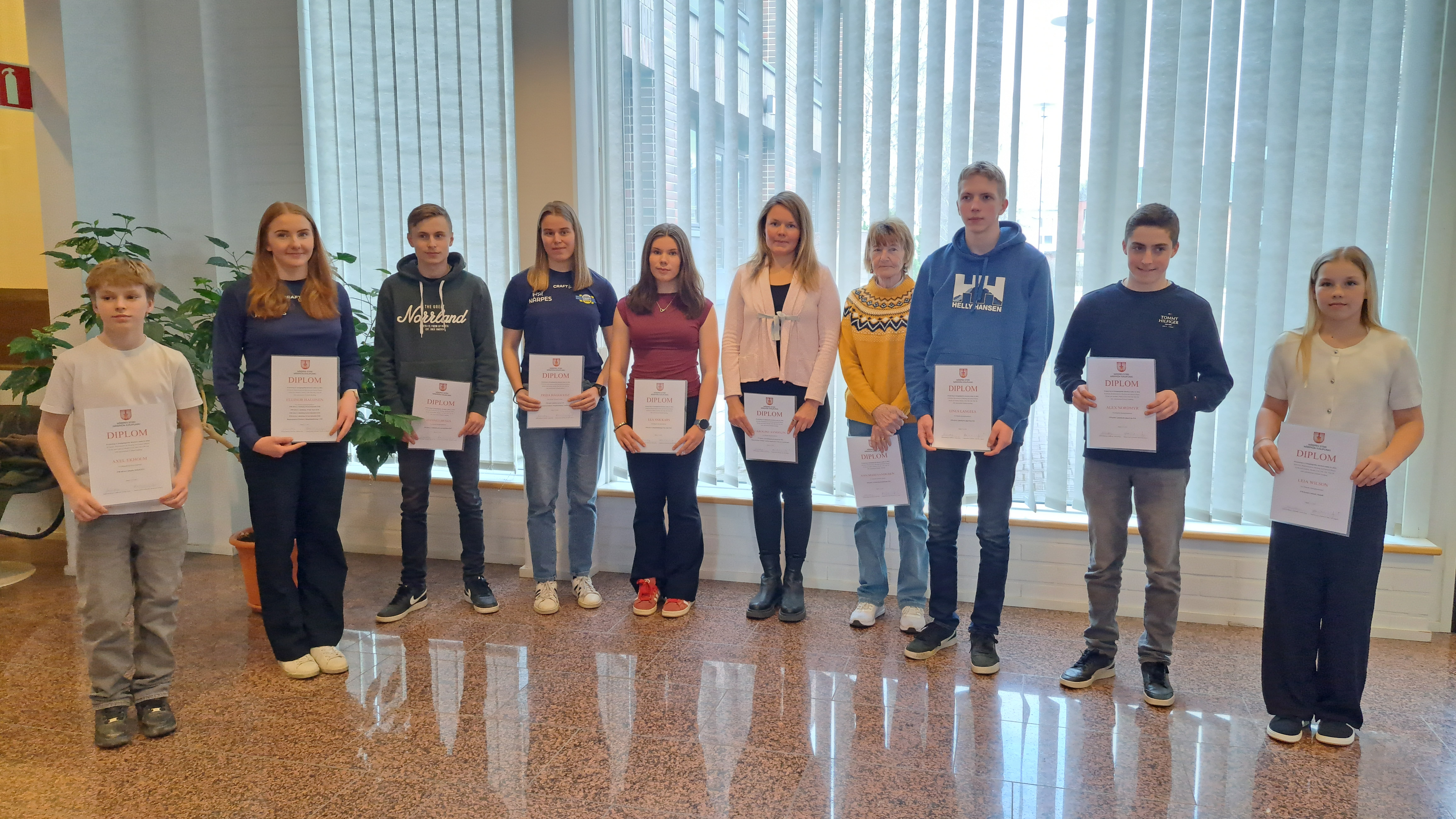 Hem / Nyheter / Premiering av framgångsrika idrottare Premiering av framgångsrika idrottare Vid stadsfullmäktiges möte 14.4.2025 premierades framgångsrika idrottare från 2024. Kriterium för att premieras av staden är att idrottaren skall representera en idrottsföreningar med hemort Närpes. Nivåer som beaktas är medalj i FM, NM, EM, VM eller OS eller representerat Finlands landslag. Totalt 12 idrottare premieras för prestationer utförda 2024. Hannes BengsFM silver i rullskidskytte normaldistans H17Förening: Närpes Kraft Skidförening r.f. Axel EkholmFM silver i teknik, fotboll P12Förening: Närpes Kraft Fotbollsförening r.f. Ellinor Halonen FM silver i skidning 20 km klassiskt D18FM silver i skidning 10 km skate D18FM silver i skidning sprint klassiskt D18FM brons i skidning 10 km klassiskt D18Representerat Finland i längdskidåkning i NMFörening: Närpes Kraft Skidförening r.f Frida HäggkvistFM guld i skidning sprint U23Representerat Finland i längdskidåkning i världscupenFörening: Närpes Kraft Skidförening r.f Heidi Kuuttinen FM brons i skidskytte masstartRepresenterat Finland i skidskytte i EM och IBU-cupFörening: Närpes Kraft Skidförening r.f Linus LangelsFM silver i jaktskytte jägartrap S16Förening: Närpes Skytteklubb r.f Alex NordmyrFM guld i jaktskytte jägartrap S16Förening: Närpes Skytteklubb r.f Inez SandbergFM guld i skidskytte normal distans D17FM brons i skidskytte sprint D17Förening: Närpes Kraft Skidförening r.f Caroline Sandelin VM brons i orienteringsskytte parsprint W21Representerat Finland i orienteringsskytte i VM och i världscupenFörening: Närpes Orienterarklubb r.f Ann-Mari Sandgren FM guld i orientering medeldistans D75 Förening: Närpes Orienterarklubb r.f Lea SnickarsFM silver i längdskidåkning 5 km skate D15Förening: Närpes Kraft Skidförening r.f Leia WilsonFM brons i teknik, fotbollFörening: Närpes Kraft Fotbollsförening r.f. På bild 10 av de 12 premierade idrottarna. Två personer hade förhinder att delta.